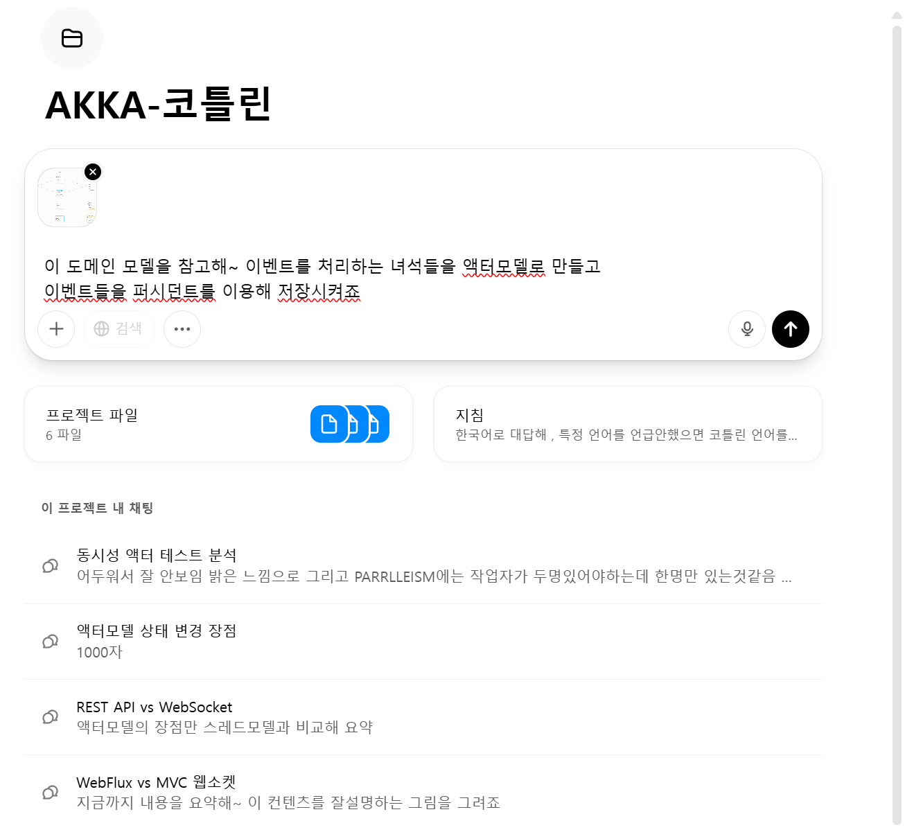 이 도메인 모델을 참고해~ 이벤트를 처리하는 녀석들을 액터모델로 만들고