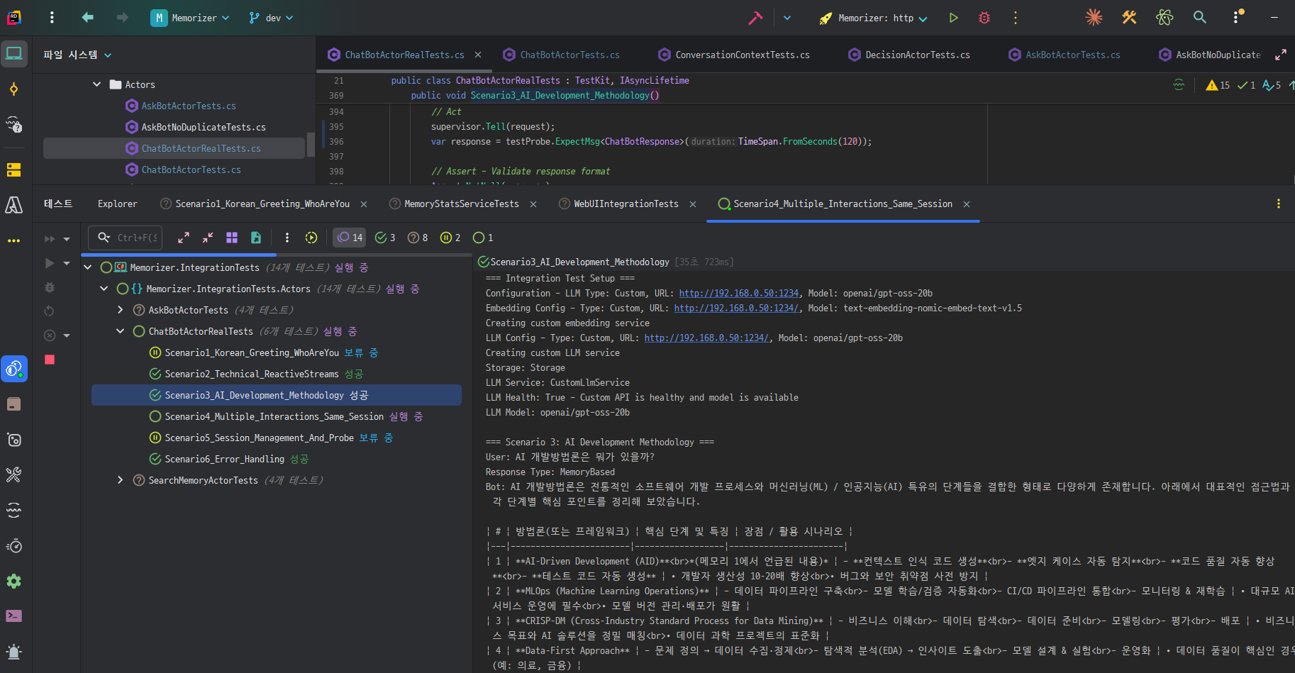 유닛테스트 작성자체도 바이브로 시도되었으며 액터모델의 특성을 이용 챗봇FLOW와 유사하게 대화형으로 시도됩니다.