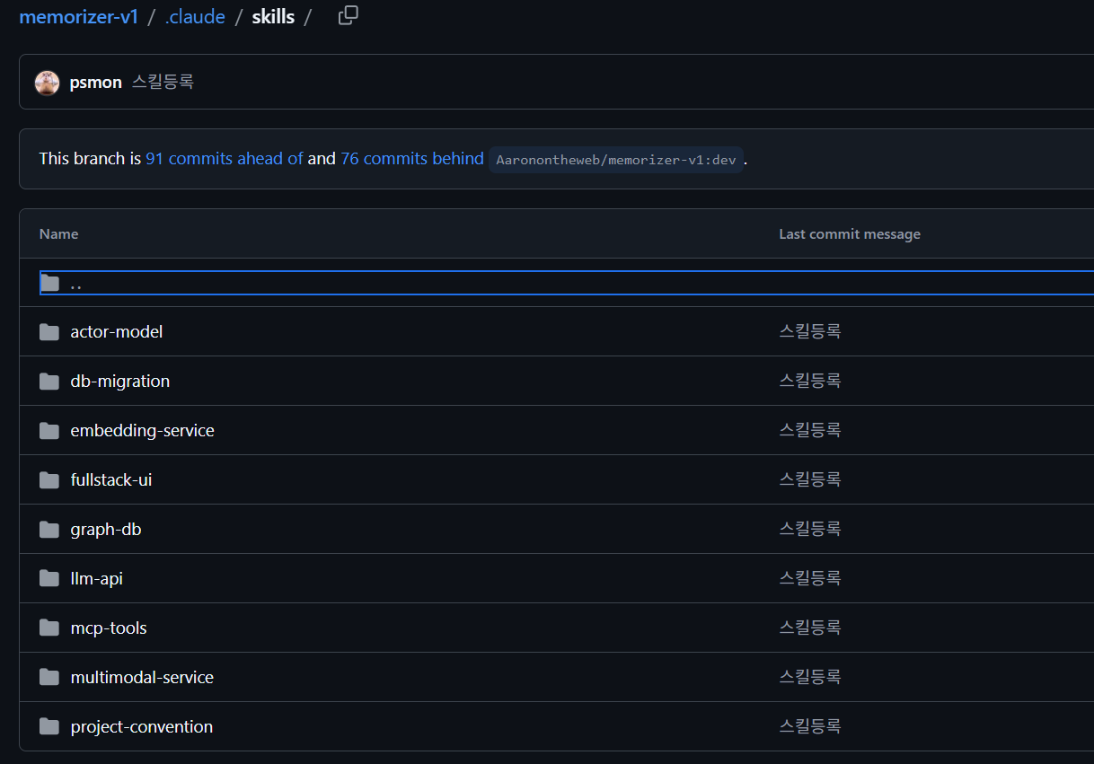 생성된 스킬은 다음 위치에 커밋이 되었으며, 내가 저런 스킬을 이용했었나? 잠시 잊고지낸 항목도 스킬로 잘 정리를 한것같습니다.