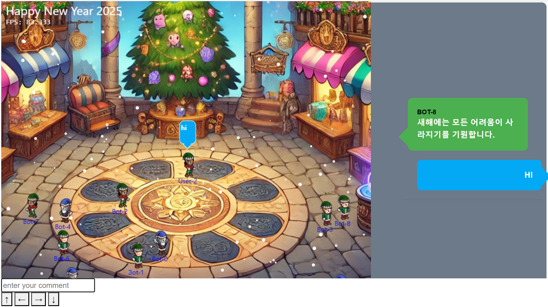 - NPC - 랜덤하게 돌아다니며 새해인사만함 - llm연결해 더 똑똑하게 만들수 있음